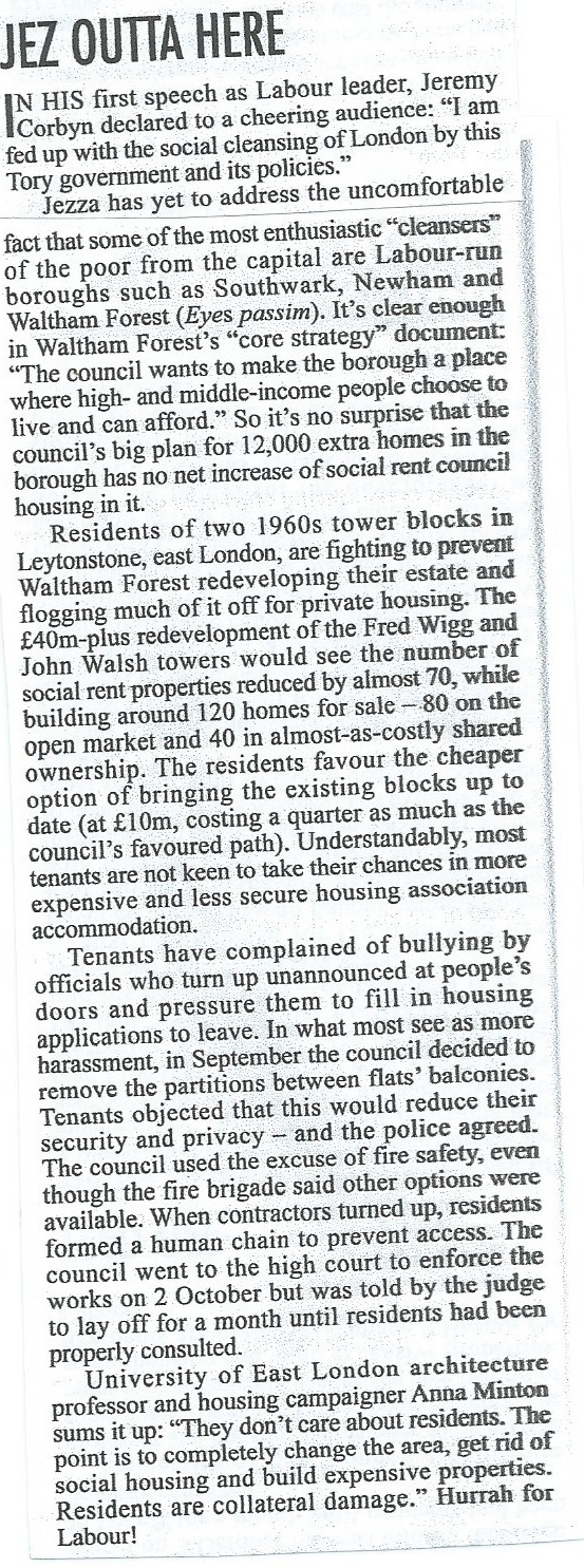 LBWF in Private Eye, again, this time over Fred Wigg and John Walsh Towers